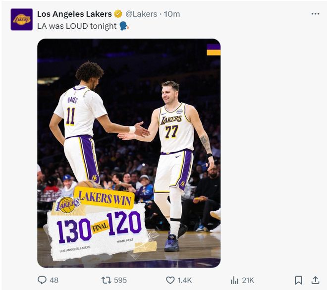 东契奇29+11+10,湖人3连胜升第三!一战评出4大功臣数据不会说谎