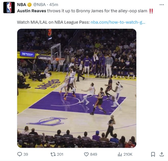 首节比赛因为是背靠背第一场的湖人,布朗尼获得了时间,小里竟然为太子爷送出了一个空接暴扣助攻!这一球直接锁定当日十佳球。